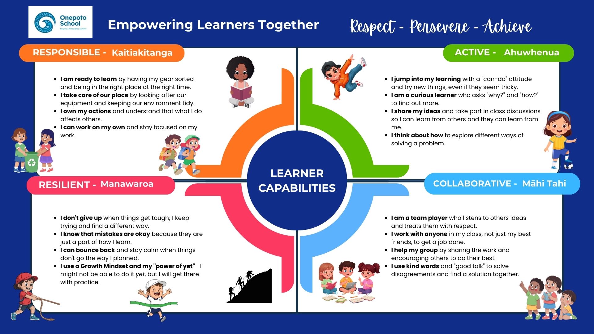 We love learning at Onepoto School! If you want to join us call us on (09) 480 7469. Please report absences on the same number or via the KiwiSchools App.